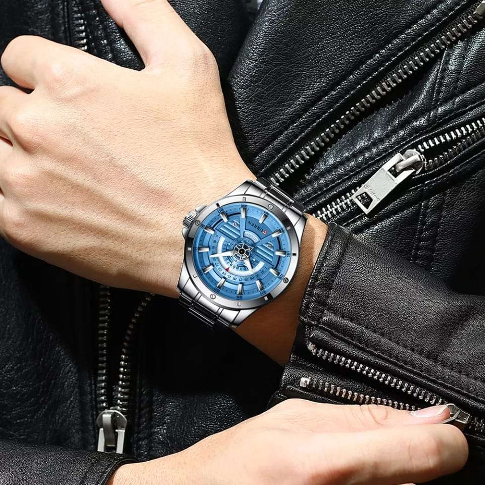 The Curren Men’s Stainless Steel Dress Quartz Wristwatch – Formal Design combines elegance, precision, and durability. Crafted with a polished stainless steel strap, a refined dial, and reliable quartz movement, this wristwatch is perfect for formal occasions, office wear, or special events. Its classic design ensures it complements any outfit, making it a timeless addition to your accessory collection. Experience sophistication and style with this latest Curren design — available now at Rio Gift Watches.