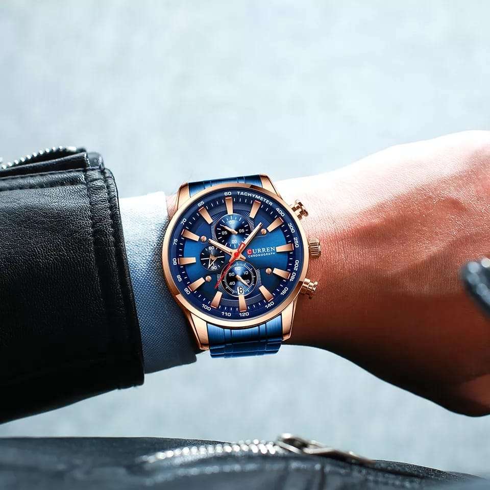 The Curren Men’s Sport Quartz Chronograph Watch with Luminous Hands is designed for men who value both style and performance. Featuring precise quartz movement, chronograph functionality, luminous hands for easy reading, a durable stainless steel band, and a convenient date display, this wristwatch is perfect for sports, outdoor activities, or everyday wear. Its sleek and modern design ensures it complements casual and sporty outfits alike. Upgrade your wristwear collection with this versatile and fashionable timepiece — available exclusively at Rio Gift Watches.
