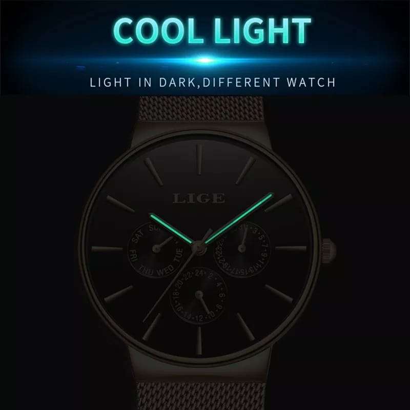 The LIGE Men’s Quartz Mesh Steel Water-Resistant Chronograph Watch combines sporty functionality with sophisticated design. Featuring a durable mesh steel strap, water-resistant casing, and accurate quartz movement, this chronograph is ideal for everyday wear, business settings, or casual outings. Its sleek design ensures comfort and style, making it a versatile accessory for the modern man. Elevate your wristwear collection with this elegant timepiece — available now at Rio Gift Watches.