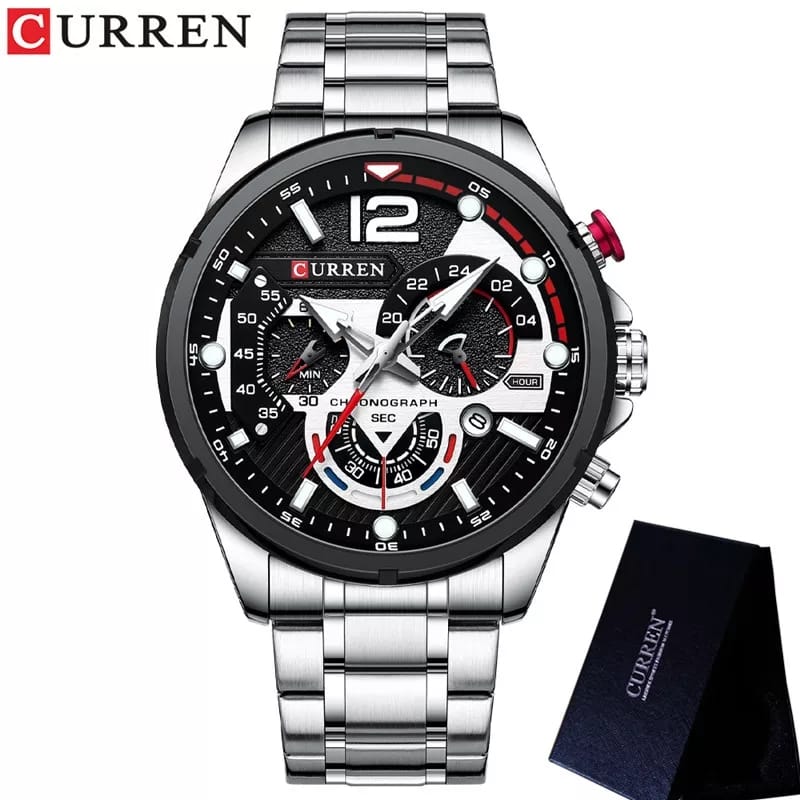 The Curren Trendy Luxury Quartz Chronograph Stainless Steel Watch combines modern style, precision, and durability. With reliable quartz movement, full chronograph functionality, luminous hands for easy reading, and a polished stainless steel strap, this timepiece is perfect for daily wear, business occasions, or casual outings. Its sleek and trendy design ensures it complements any outfit while providing practical timekeeping. Make a bold statement with this versatile luxury watch — available exclusively at Rio Gift Watches.
