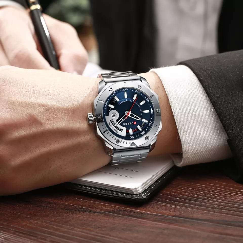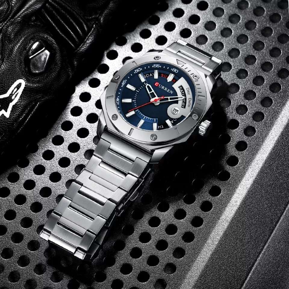 The Curren Men’s Stainless Steel Auto Date/Day Quartz Watch combines functionality, durability, and classic style. Featuring a sleek stainless steel band, precise quartz movement, and an automatic date and day display, this watch is perfect for daily wear, office use, or formal occasions. Its versatile design ensures it complements any outfit while providing reliable timekeeping. Upgrade your wristwear collection with this elegant and practical timepiece — available now at Rio Gift Watches.