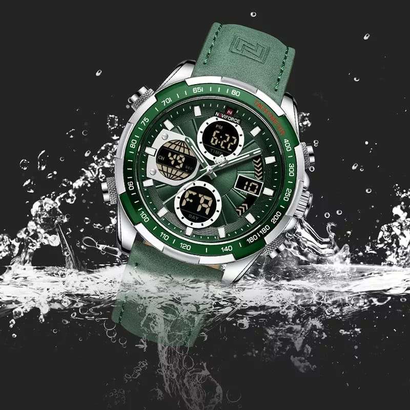The NAVIFORCE Multifunctional Military Leather Watch for Men NF9197L is built for strength, style, and reliability. Featuring a durable leather strap, multifunctional display, and precise quartz movement, it’s designed to keep up with both adventurous outdoor activities and daily wear. Its military-inspired design brings a bold statement to your wrist while offering practical features like dual time and date display. Experience durability and modern fashion in one — available now at Rio Gift Watches.